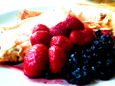 Jag och alla femåringar runt om i landet har förmodligen samma favoriträtt. Pannkakor. Tror knappast att det finns något bättre, speciellt när laggarna har en stänk vanilj i sig. Och någon torsdag då och då lyxar jag till det med just pannkisar. Dagens fick sällskap av säsongens sista jordgubbar och ett par nävar blåbär.
